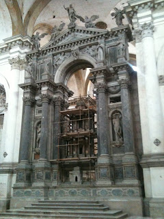 I did however, purchase the light fixtures for the bathroom on Murano. I had been eyeing the work of a nice young man, Marco Rubelli, who has a shop on Fondamenta Daniele Manin, for awhile now, wanting one of his lamps. I decided to go for it, and had him make a hanging lamp and 2 wall lamps for over the mirror in the bathroom. They won't be ready until the end of September, but worth the wait, and will be just perfect in that room. I came away with the budget in tact, just a tiny little splurge.